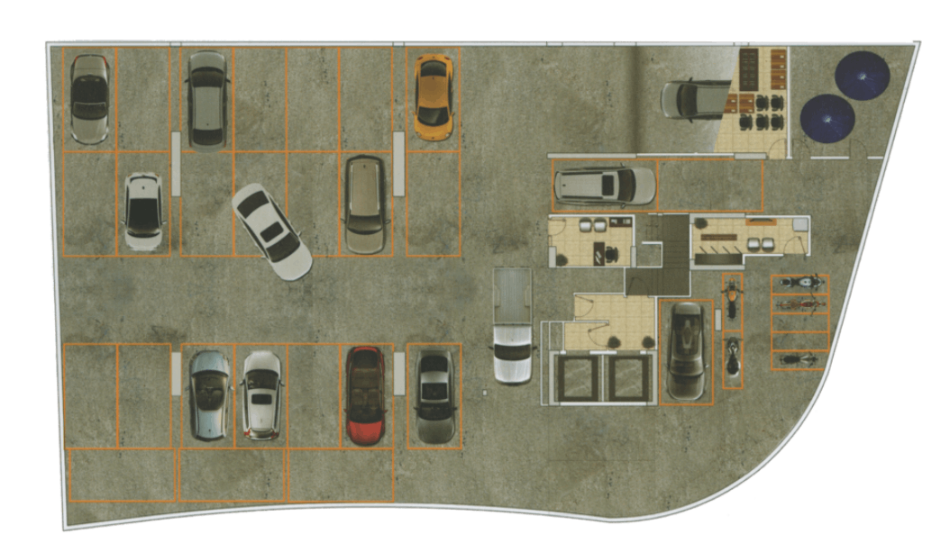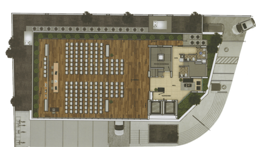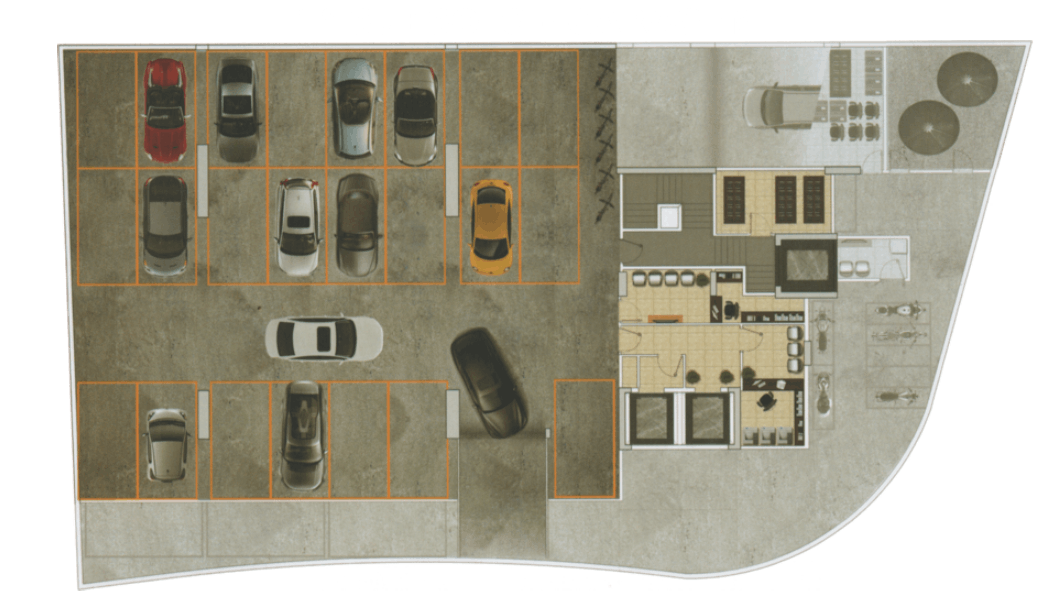• Estacionamento com 2 subsolos de garagem, 57 vagas para carros e 7 para motos, com acesso